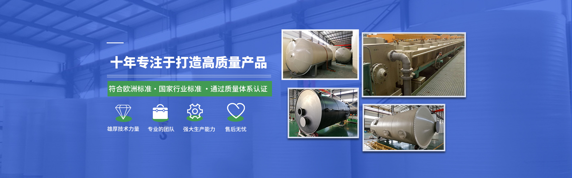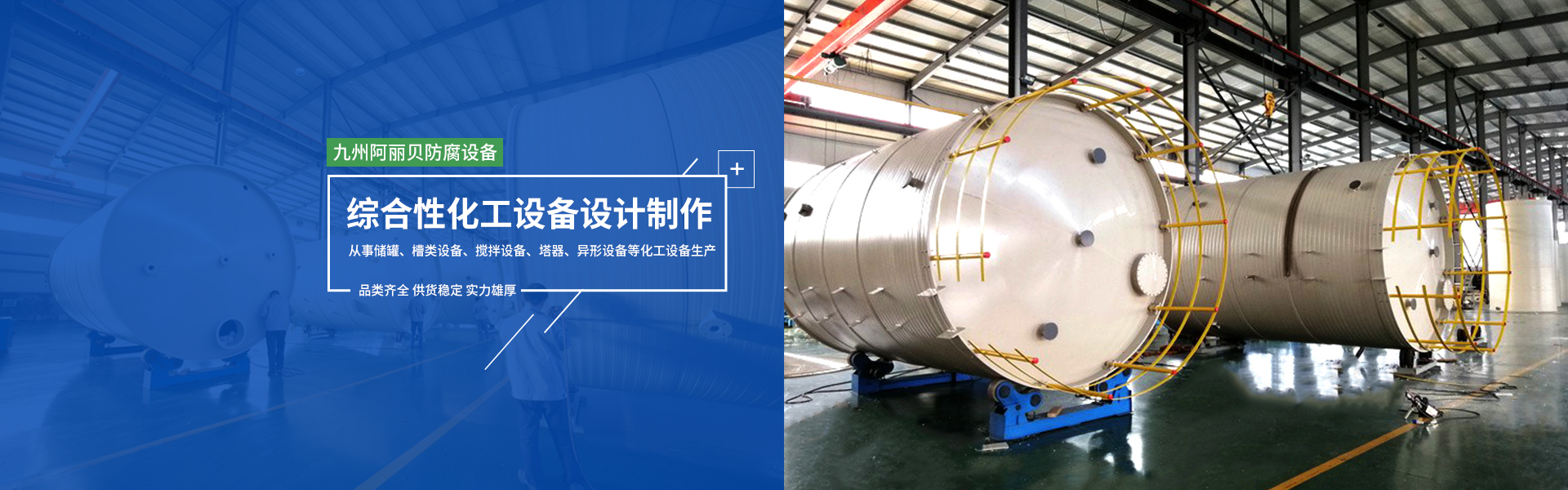 拥有工程师5名,员工100余名,历经十年耕耘 拥有雄厚的技术基础和丰富的生产经验。 技术与实力,是品质的保证。质优的材料,完善的设备,高超的技术,打造九州可信赖的大型防腐设备。
