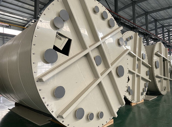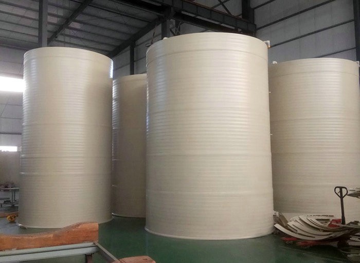 4、加工需要采用钢制模具,在加工前需要采用天然气预热,开机成本大,PP贮槽直接采用聚丙烯板材卷成罐体,成本小;